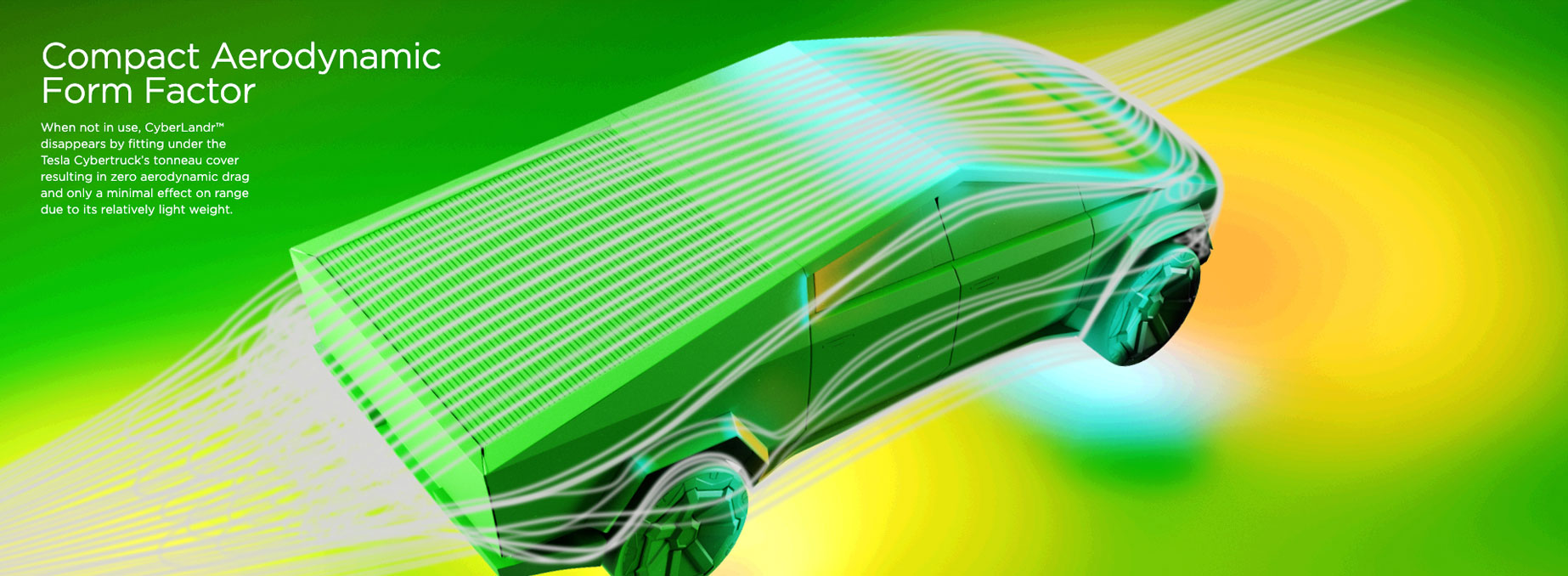 and placement at the rear of the Tesla Cybertruck—where airflow naturally creates a low-pressure